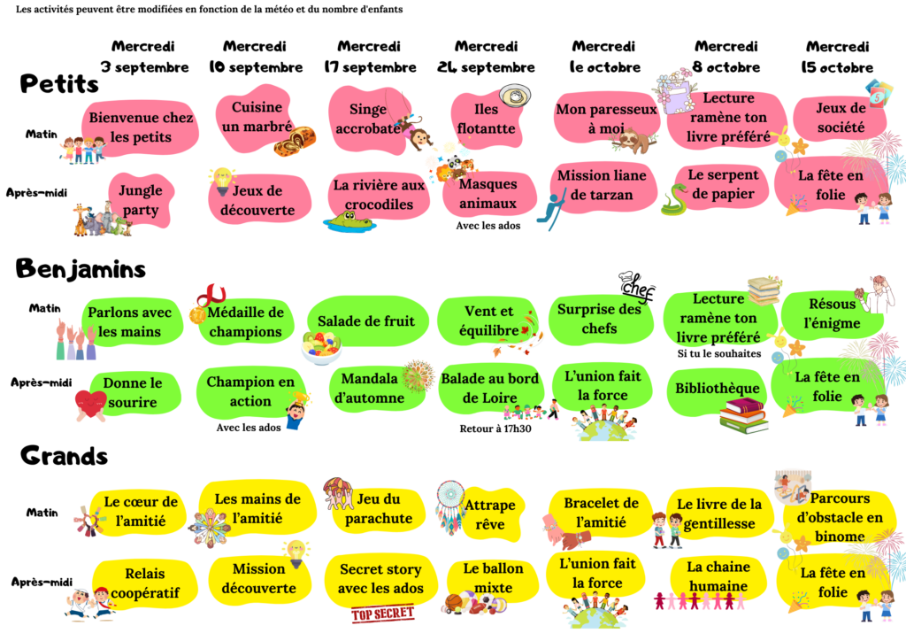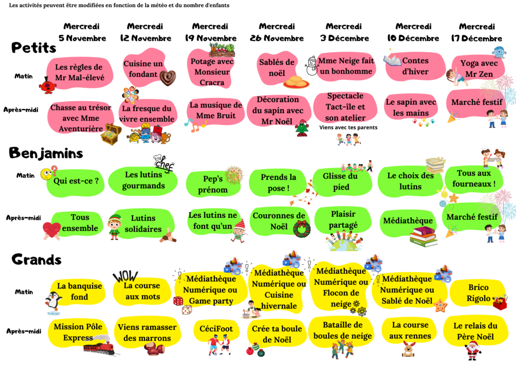 Des activités d’éveil, de découverte, manuelles, culturelles, sportives sont proposées et adaptées en fonction de l’âge des enfants.