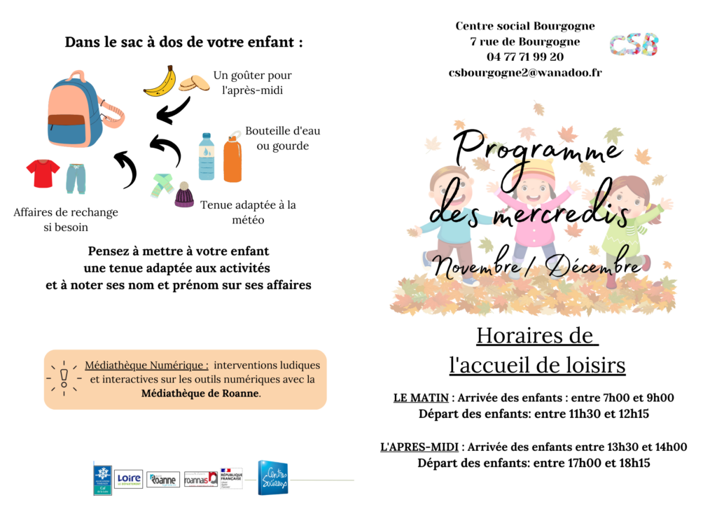 En période scolaire, le Centre de loisirs est ouvert les mercredis matins et après midi avec possibilité de repas.