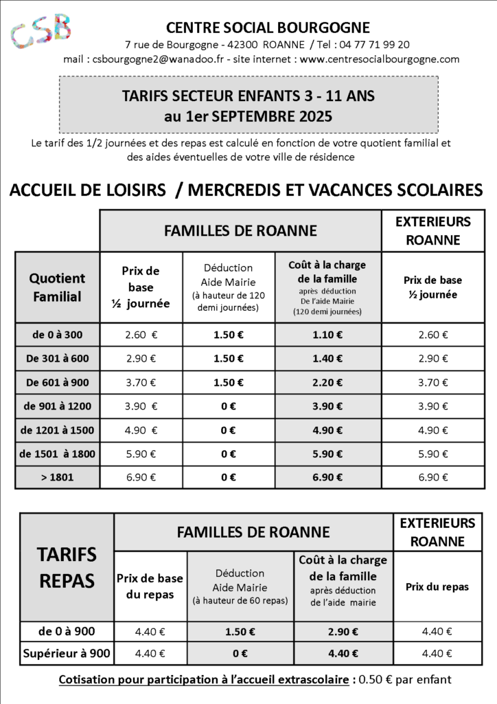 Les tarifs du centre de loisirs sont calculés en fonction de votre quotient familial.