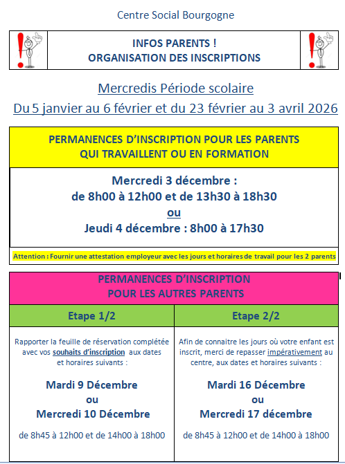 Par le lien ci dessous, retrouvez le document à compléter pour l’inscription de votre enfant pour les mercredis en période scolaire de janvier à avril