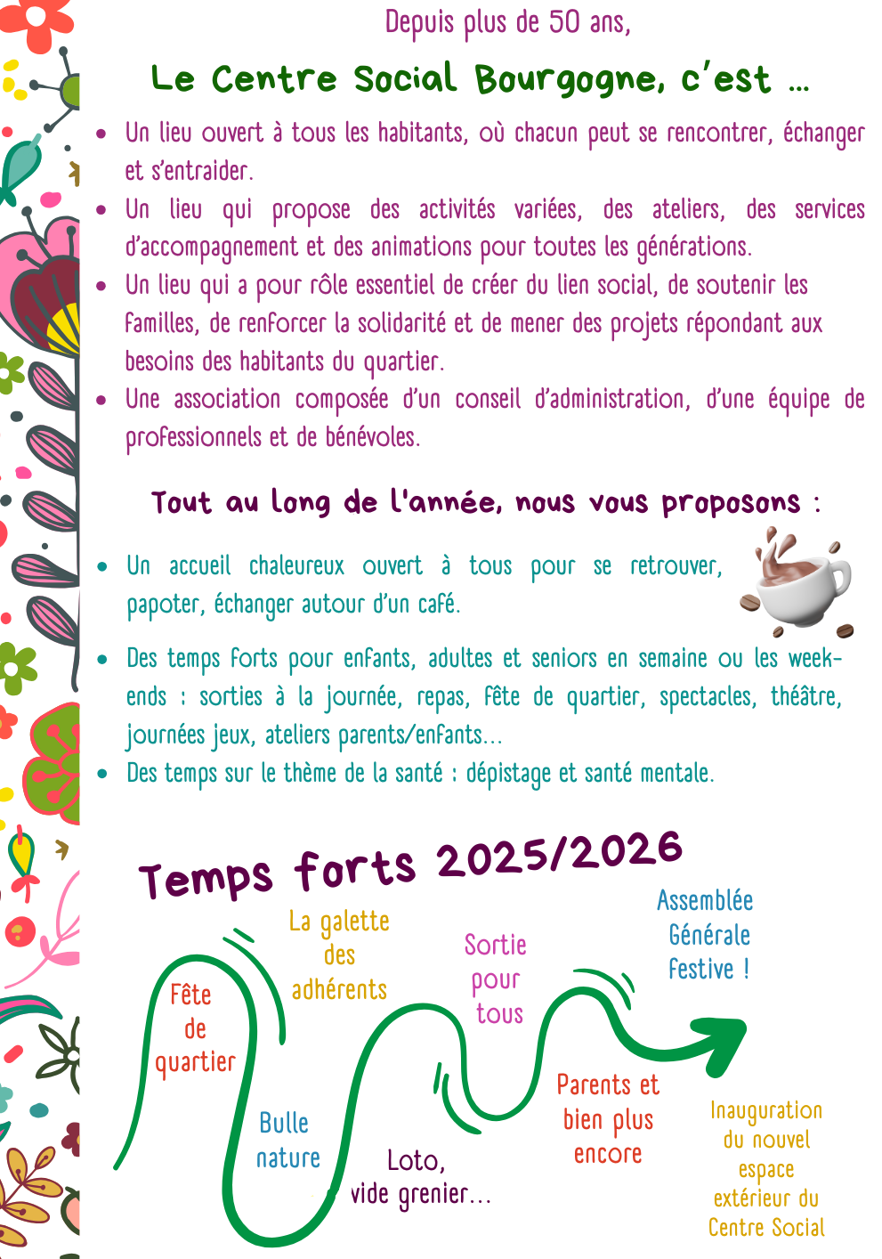 Retrouvez toutes les infos concernant les activités du Centre Social sur plaquette 2025/2026